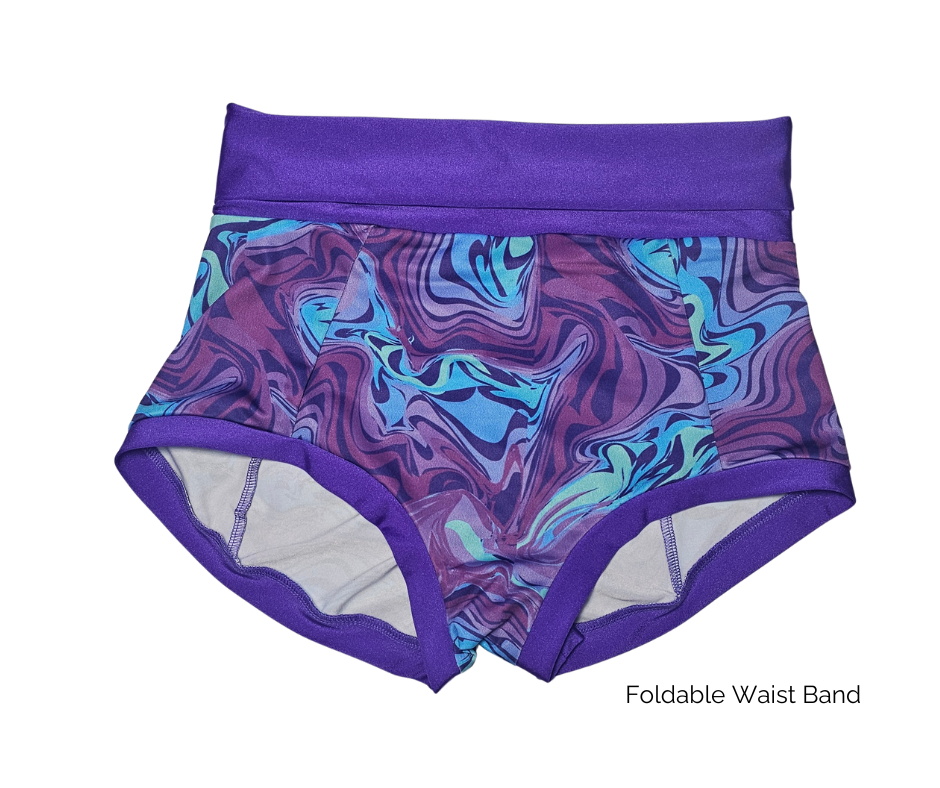 Swirl Marble pole pants! Designed for those who want full coverage, these pants feature a high, foldable waistband - perfect for times where you need to expose side for grip on the pole for some moves and keep covered and warm when you don't.